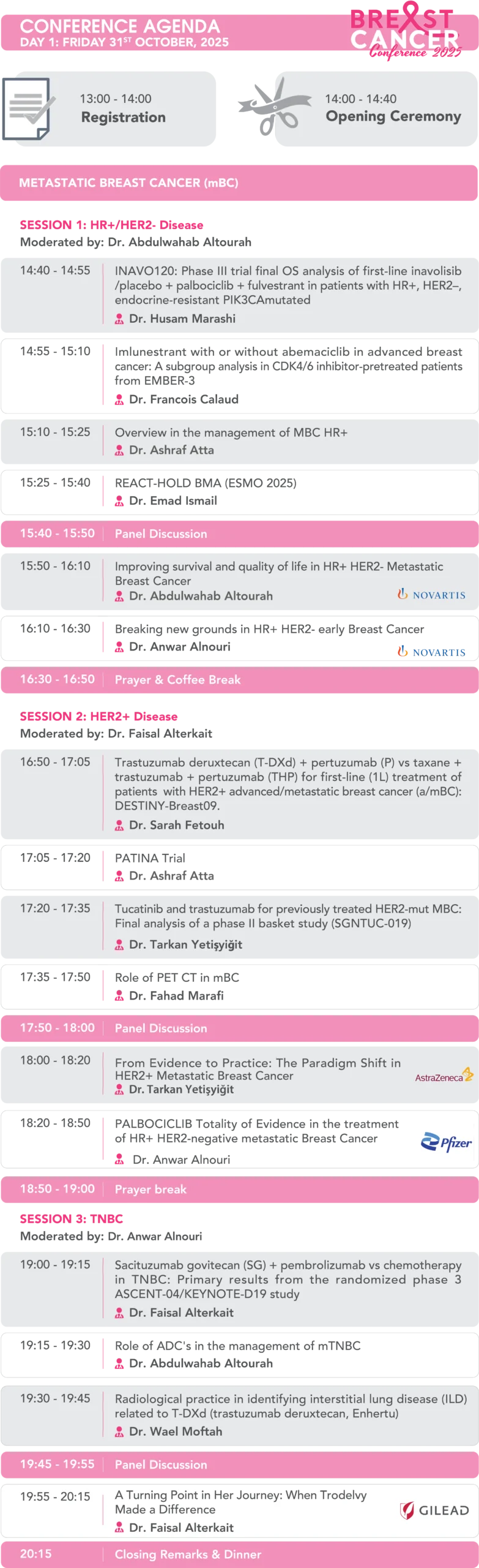 It is with great pleasure that I invite you to attend the Breast Cancer Conference 2025, taking place from October 31 to November 1, 2025, at the Radisson Blu Hotel in Kuwait City.